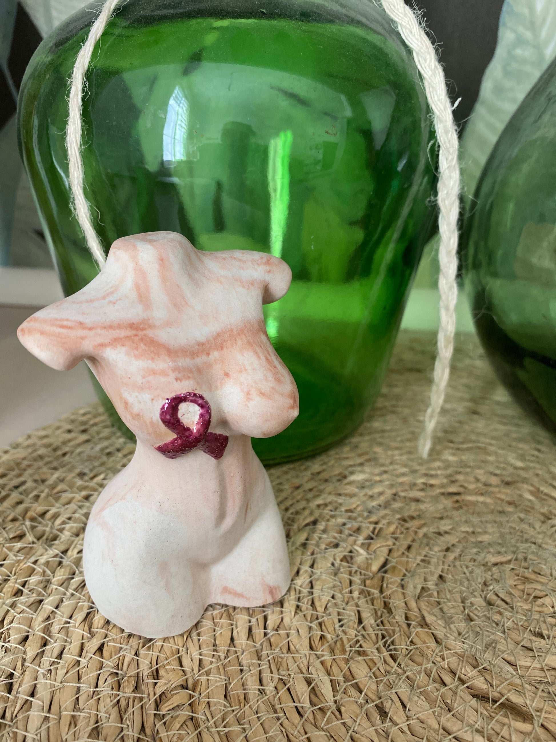 Le Petit Nuba est bien plus qu’un objet décoratif. C’est une célébration de la féminité, de la force et du courage, à travers un buste de femme stylisé, orné du ruban rose emblématique du combat contre le cancer du sein.