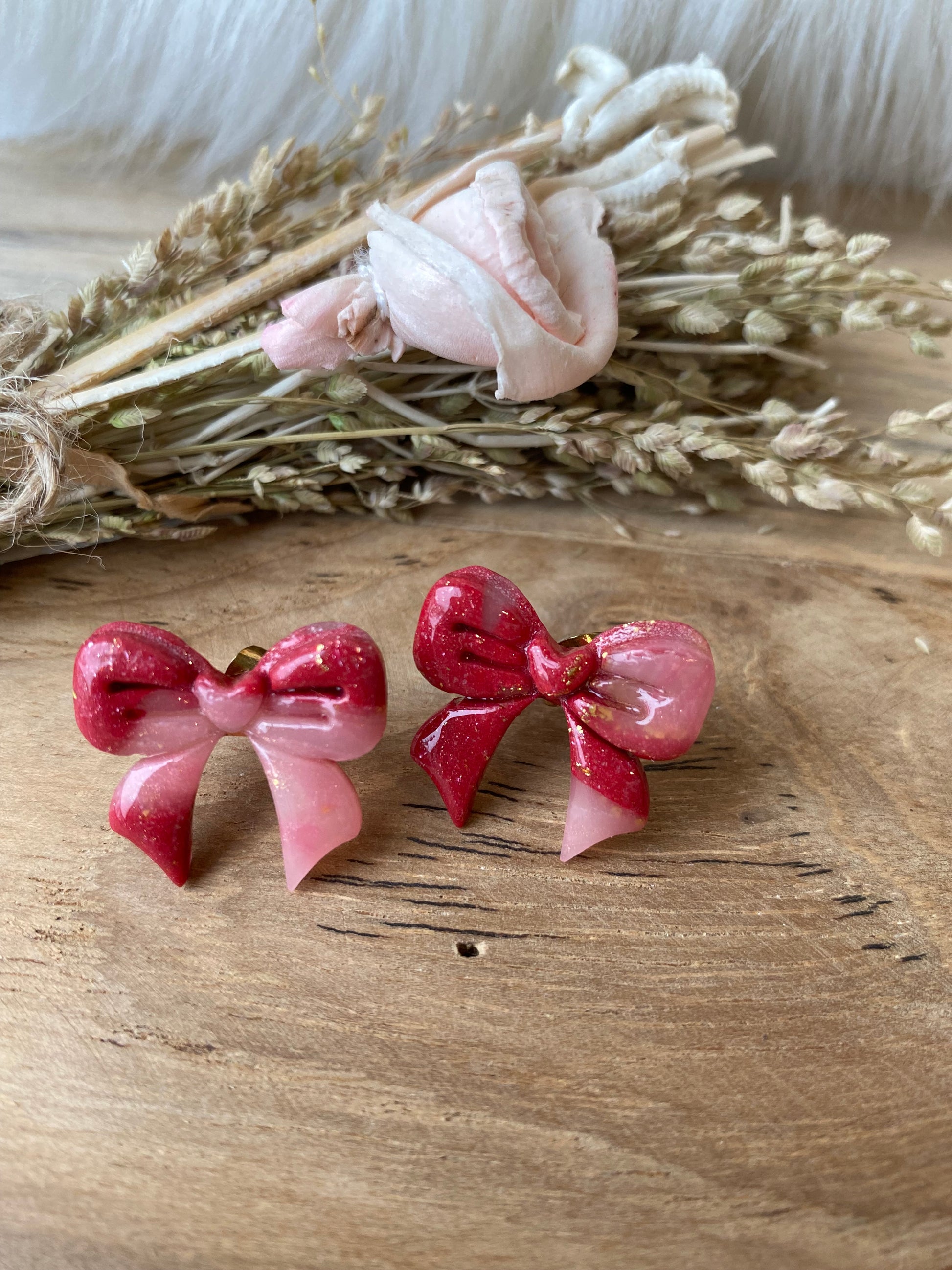 Craquez pour ces adorables puces en forme de petits nœuds, entièrement réalisées à la main en pâte polymère. Leur design fin et délicat, d’environ 1,8cm, en fait un accessoire discret mais plein de charme.