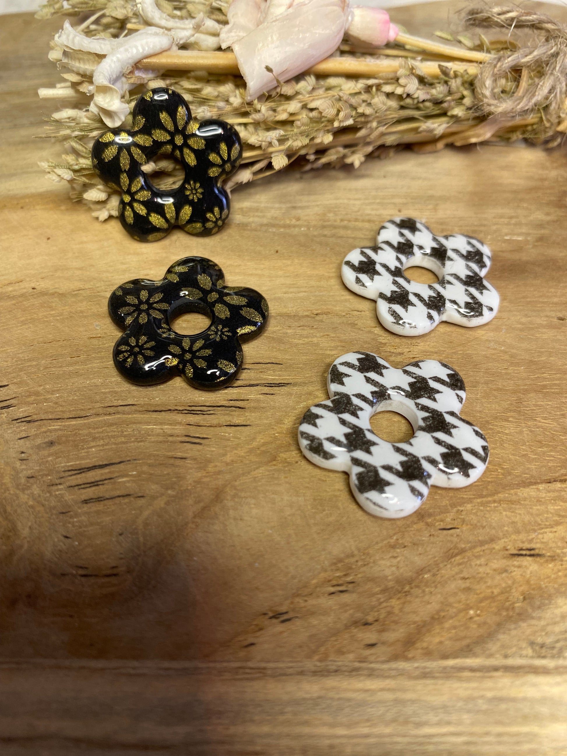 Ajoutez une touche de délicatesse à vos créoles grâce à ces pampilles en forme de fleur, façonnées à la main en pâte polymère et sublimées par une résine UV brillante. Leur design simple et épuré apporte une élégance naturelle, parfaite pour personnaliser vos boucles selon vos envies.