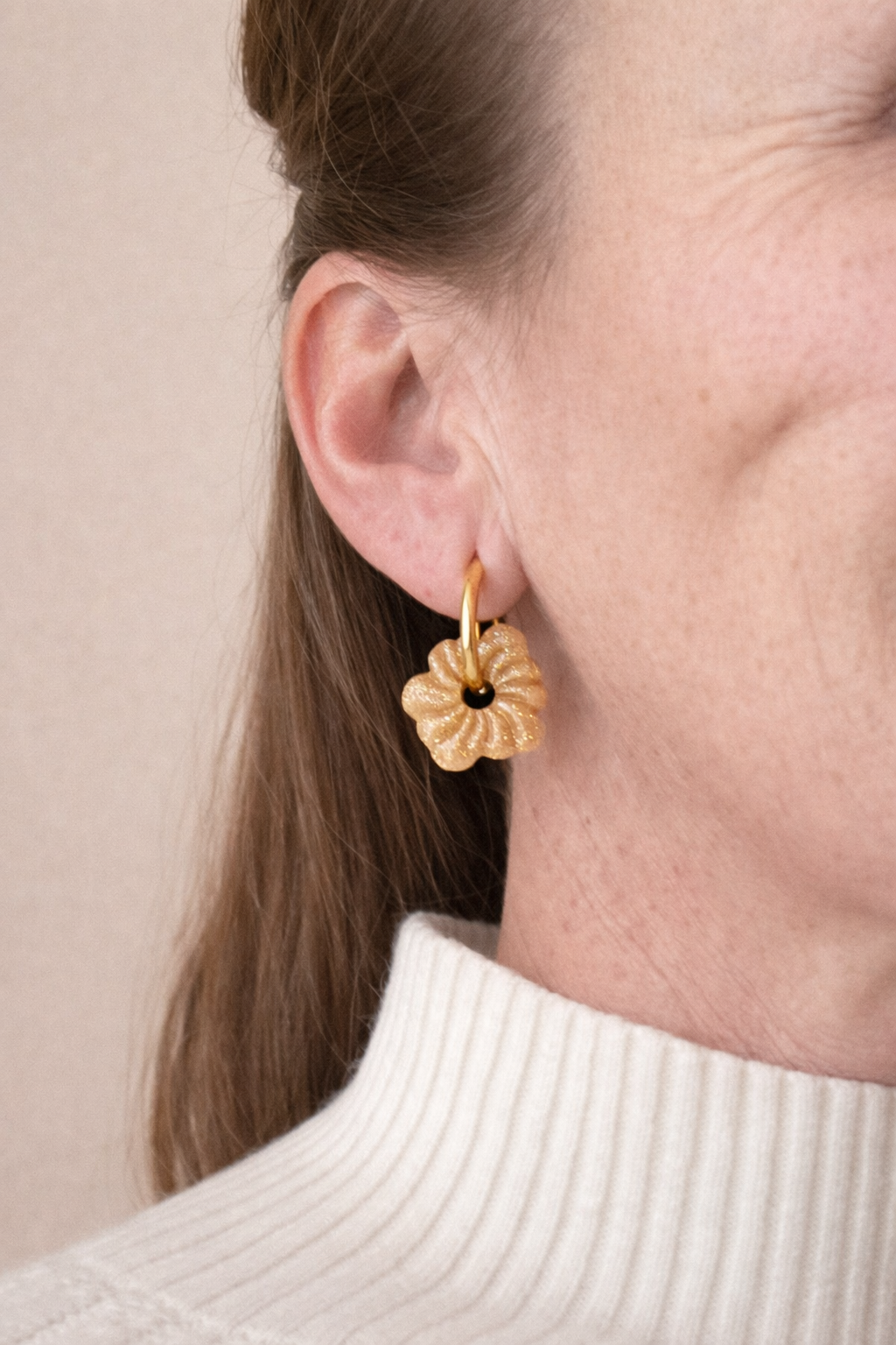 Le modèle Mini Rosalie fait 1,8cm compatible avec toutes les créoles mais idéal avec des créoles entre 12mm et 16mm
