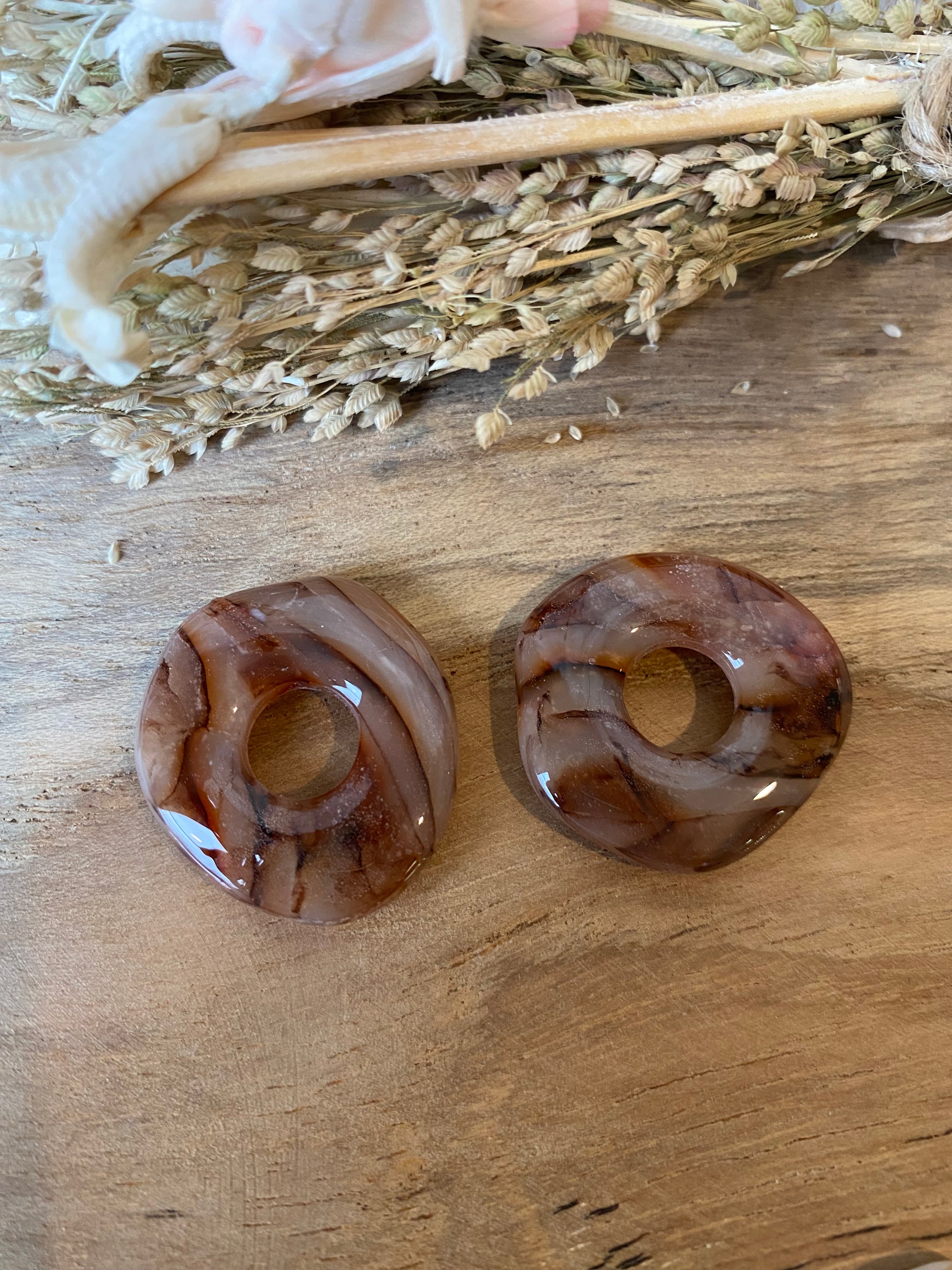 Selon le modèle, le bijou peut être recouvert de résine pour apporter brillance et protection, ou laissé brut pour un rendu plus naturel.