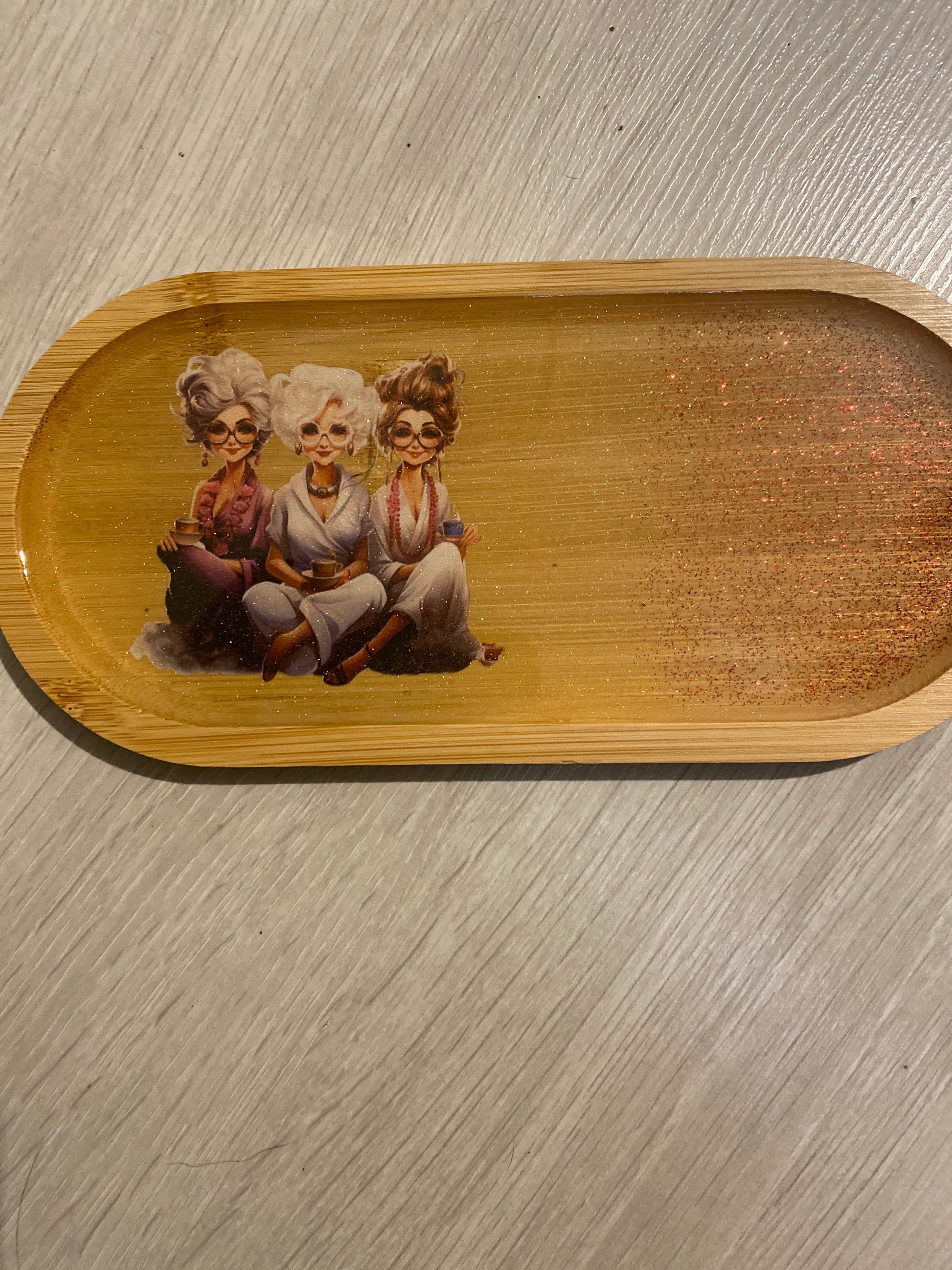 Vide poche, plateau apéro en bois vernis décoré et recouvert de résine époxy professionnelle.